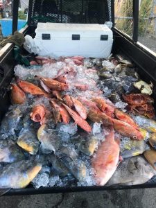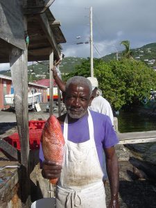Frenchtown fisher with red hind (Epinephelus guttatus)