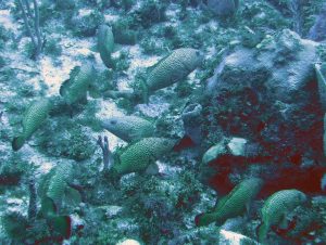 Because most spawning aggregations sites are used by other species during different times of year, these species may also benefit from the seasonal and year-round closed areas. For example with in the MCD aggregations of tiger grouper and schoolmaster snapper (Lutjanus apodus) have also been observed in spring and summer months. At the Grammanik Bank dog (Lutjanus jocu), cubera (Lutjanus cyanopterus) and mutton snapper have been observed aggregating along with tiger grouper, yellowmouth grouper (Mycteroperca interstitialis) and chub (Kyphosis sectatrix). Within the Lang Bank and Mutton snapper seasonal closed areas queen triggerfish (Balistes vetula), and dog and cubera snapper have been observed aggregating. Finally many shallow near-shore reefs host a variety of resident spawning species including Yellowtail parrotfish (Sparisoma rubripinne), striped parrotfish (Scarus iserti), and spotted goatfish (Pseudopeneus maculatus) but these spawning aggregations are typically poorly known and thus afforded little protection.