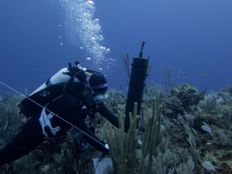 Perry Institute of Marine Science Senior Scientist Dr Krista Sherman on a dive as part of research on the Nassau grouper. (PHOTO: VALERIA PIZARRO)